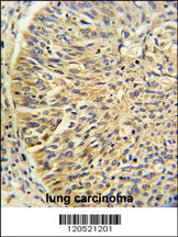 Formalin-fixed and paraffin-embedded human lung carcinoma reacted with CCT3 Antibody (Center), which was peroxidase-conjugated to the secondary antibody, followed by DAB staining. This data demonstrates the use of this antibody for immunohistochemistry; clinical relevance has not been evaluated. |