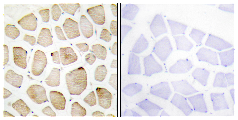 Immunohistochemistry analysis of paraffin-embedded human skeletal muscle tissue using MAPK3 antibody. |