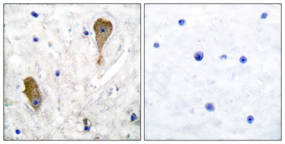 Immunohistochemical analysis of paraffin-embedded human brain tissue using GAD67 antibody. |