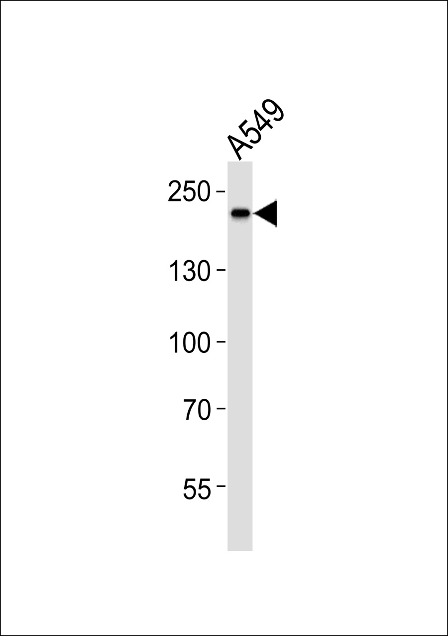 Western blot analysis of lysate from A549 cell line,using SLK Antibody(APR13401G). APR13401G was diluted at 1:1000. A goat anti-rabbit IgG H&L(HRP) at 1:5000 dilution was used as the secondary antibody.Lysate at 35ug.