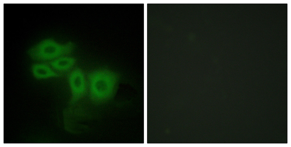 Immunofluorescence analysis of HepG2 cells, using SLK antibody.