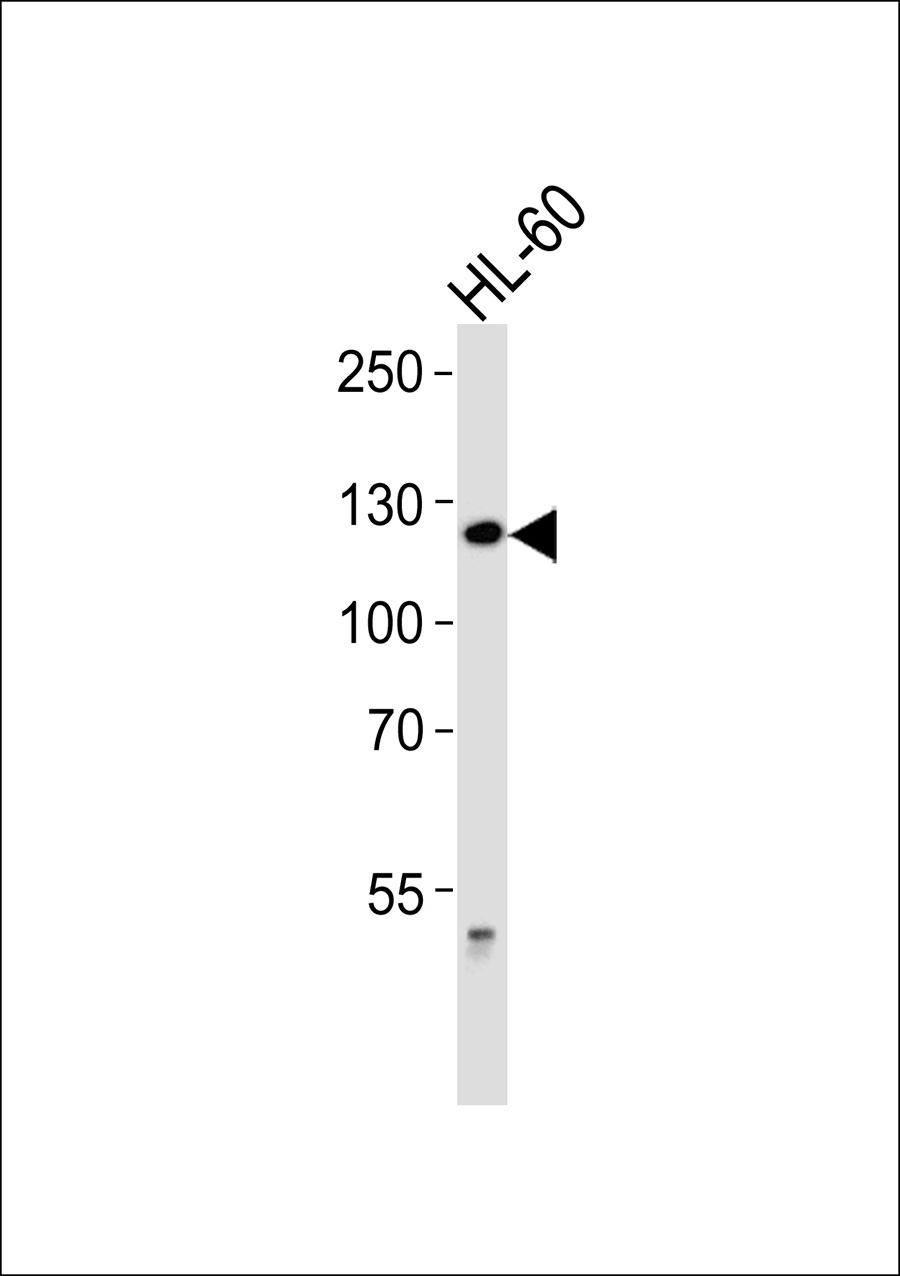 Western blot analysis of lysate from HL-60 cell line,using RANBP6 Antibody(AMM07515G). AMM07515G was diluted at 1:1000. A goat anti-rabbit IgG H&L(HRP) at 1:5000 dilution was used as the secondary antibody.Lysate at 35ug. |