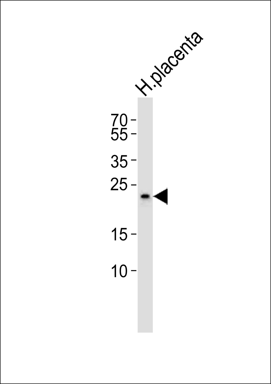 Western blot analysis of lysate from human placenta tissue lysate,using EFNA2 Antibody(APG03261G). APG03261G was diluted at 1:1000. A goat anti-rabbit IgG H&L(HRP) at 1:5000 dilution was used as the secondary antibody.Lysate at 35ug. |