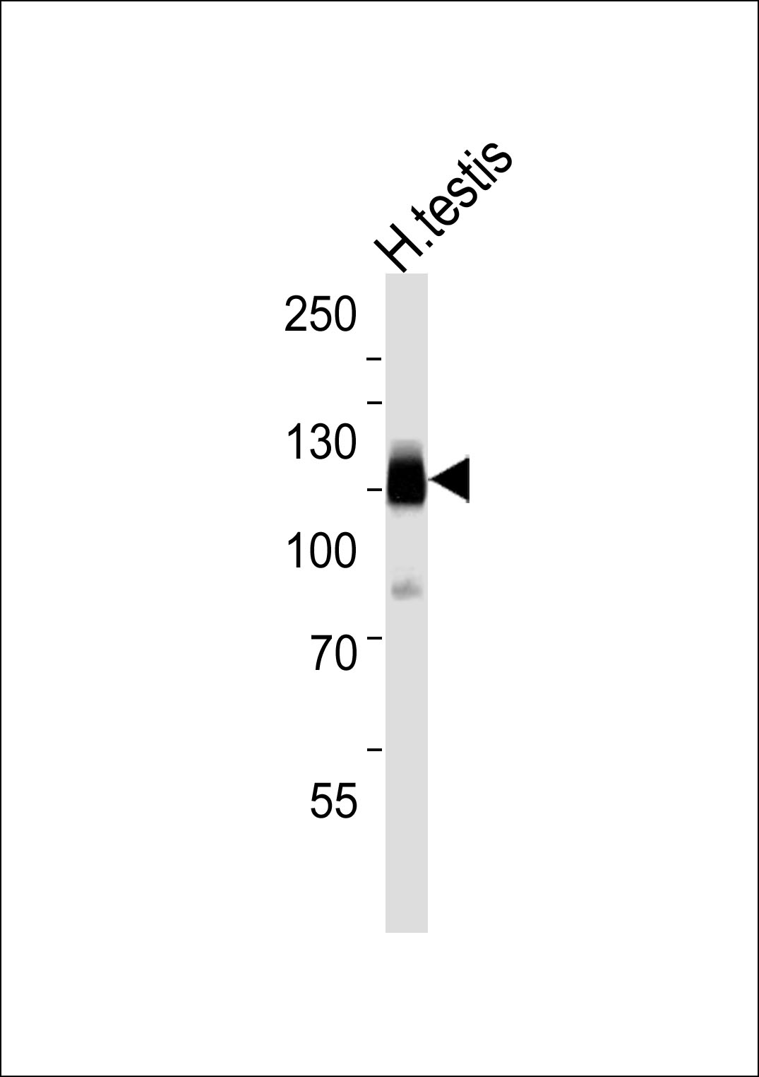 Western blot analysis of lysate from human testis tissue lysate,using CABYR Antibody was diluted at 1:1000. A goat anti-rabbit IgG H&L(HRP) at 1:5000 dilution was used as the secondary antibody.Lysate at 35ug. |