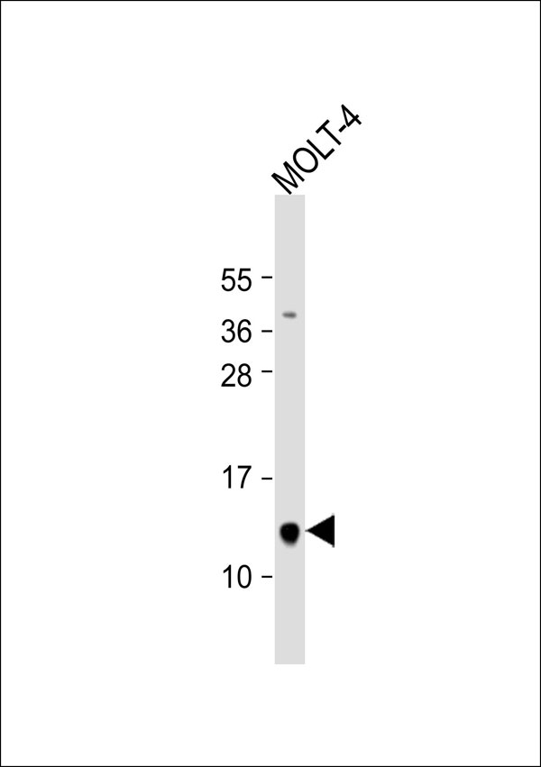 Anti-PP15 Antibody at 1:1000 dilution + MOLT-4 whole cell lysate Lysates/proteins at 20 μg per lane. Secondary Goat Anti-Rabbit IgG, (H+L),Peroxidase conjugated at 1/10000 dilution. Predicted band size : 14 kDa Blocking/Dilution buffer: 5% NFDM/TBST. |