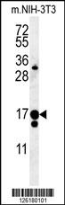 C14orf179 Antibody (Center)(Cat. APR15189G) western blot analysis in mouse NIH-3T3 cell line lysates (35ug/lane).This demonstrates the C14orf179 antibody detected the C14orf179 protein (arrow).