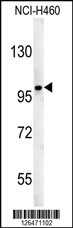 ST18 Antibody (N-term)(Cat. AMM07994G) western blot analysis in NCI-H460 cell line lysates (35ug/lane).This demonstrates the ST18 antibody detected the ST18 protein (arrow).