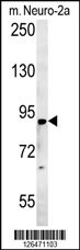 ST18 Antibody (N-term)(Cat. AMM07994G) western blot analysis in mouse Neuro-2a cell line lysates (35ug/lane).This demonstrates the ST18 antibody detected the ST18 protein (arrow). |