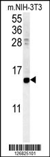 CRABP1 Antibody (C-term)(Cat. APR15582G) western blot analysis in mouse NIH-3T3 cell line lysates (35ug/lane).This demonstrates the CRABP1 antibody detected the CRABP1 protein (arrow).