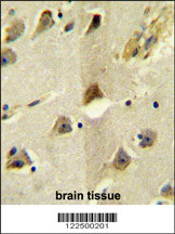 SLC12A5 Antibody (N-term) (Cat. APR13326G) immunohistochemistry analysis in formalin fixed and paraffin embedded human brain tissue followed by peroxidase conjugation of the secondary antibody and DAB staining. This data demonstrates the use of the SLC12A5 Antibody (N-term) for immunohistochemistry. Clinical relevance has not been evaluated. |