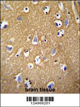 BCAN antibody (C-term) (Cat. APR11507G) immunohistochemistry analysis in formalin fixed and paraffin embedded human brain tissue followed by peroxidase conjugation of the secondary antibody and DAB staining.This data demonstrates the use of the BCAN antibody (C-term) for immunohistochemistry. Clinical relevance has not been evaluated.