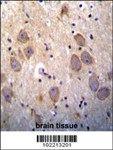 cIAP2 (BIRC3) antibody (N-term) (Cat. APR07031G)immunohistochemistry analysis in formalin fixed and paraffin embedded human brain tissue followed by peroxidase conjugation of the secondary antibody and DAB staining.This data demonstrates the use of cIAP2 (BIRC3) antibody (N-term) for immunohistochemistry. Clinical relevance has not been evaluated. |