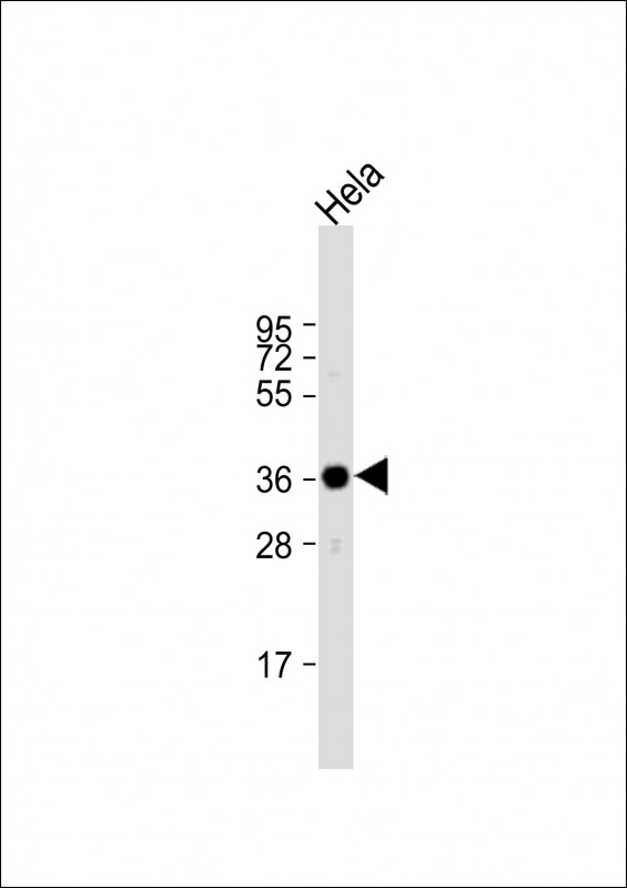 Anti-ARPC1A Antibody (C-term) at 1:1000 dilution + Hela whole cell lysate Lysates/proteins at 20 μg per lane. Secondary Goat Anti-Rabbit IgG, (H+L), Peroxidase conjugated at 1/10000 dilution. Predicted band size : 42 kDa Blocking/Dilution buffer: 5% NFDM/TBST.