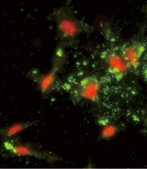 Immunofluorescence analysis of ARPC1A Antibody (C-term) with hela cells. 0.025 mg/ml primary antibody was followed by FITC-conjugated goat anti-rabbit lgG (whole molecule). FITC emits green fluorescence.Red counterstaining is PI. |