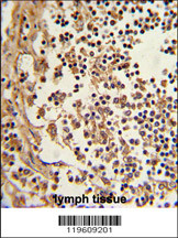 Formalin-fixed and paraffin-embedded human lymph reacted with EEF1D Antibody (N-term), which was peroxidase-conjugated to the secondary antibody, followed by DAB staining. This data demonstrates the use of this antibody for immunohistochemistry; clinical relevance has not been evaluated.