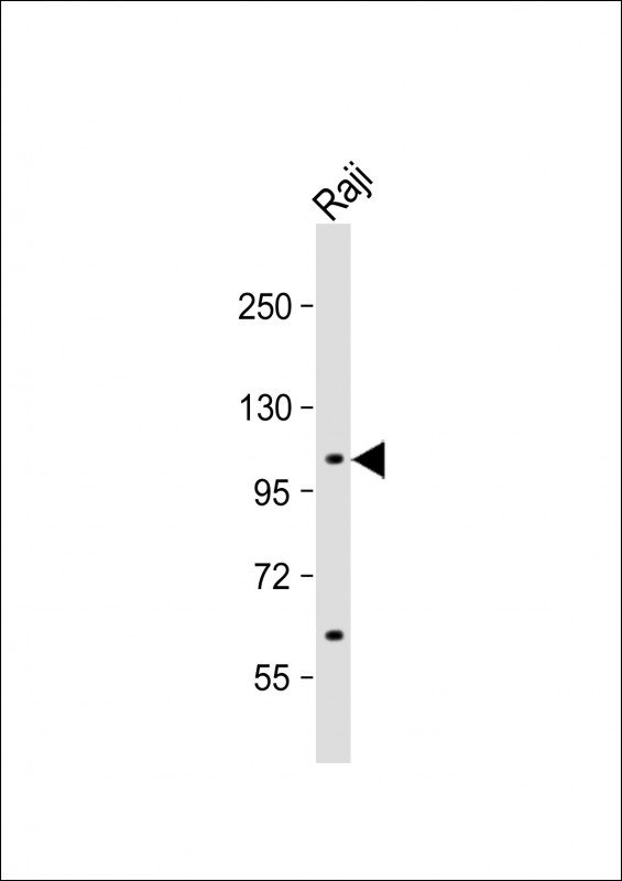 Anti-MAP4K1 Antibody (S368) at 1:1000 dilution + Raji whole cell lysate Lysates/proteins at 20 μg per lane. Secondary Goat Anti-Rabbit IgG, (H+L), Peroxidase conjugated at 1/10000 dilution. Predicted band size : 91 kDa Blocking/Dilution buffer: 5% NFDM/TBST. |