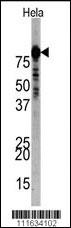 Western blot analysis of anti-PIK3R1 Antibody (N-term L11) Pab (Cat. APR07161G) in Hela cell line lysates (35ug/lane). PIK3R1(arrow) was detected using the purified Pab.