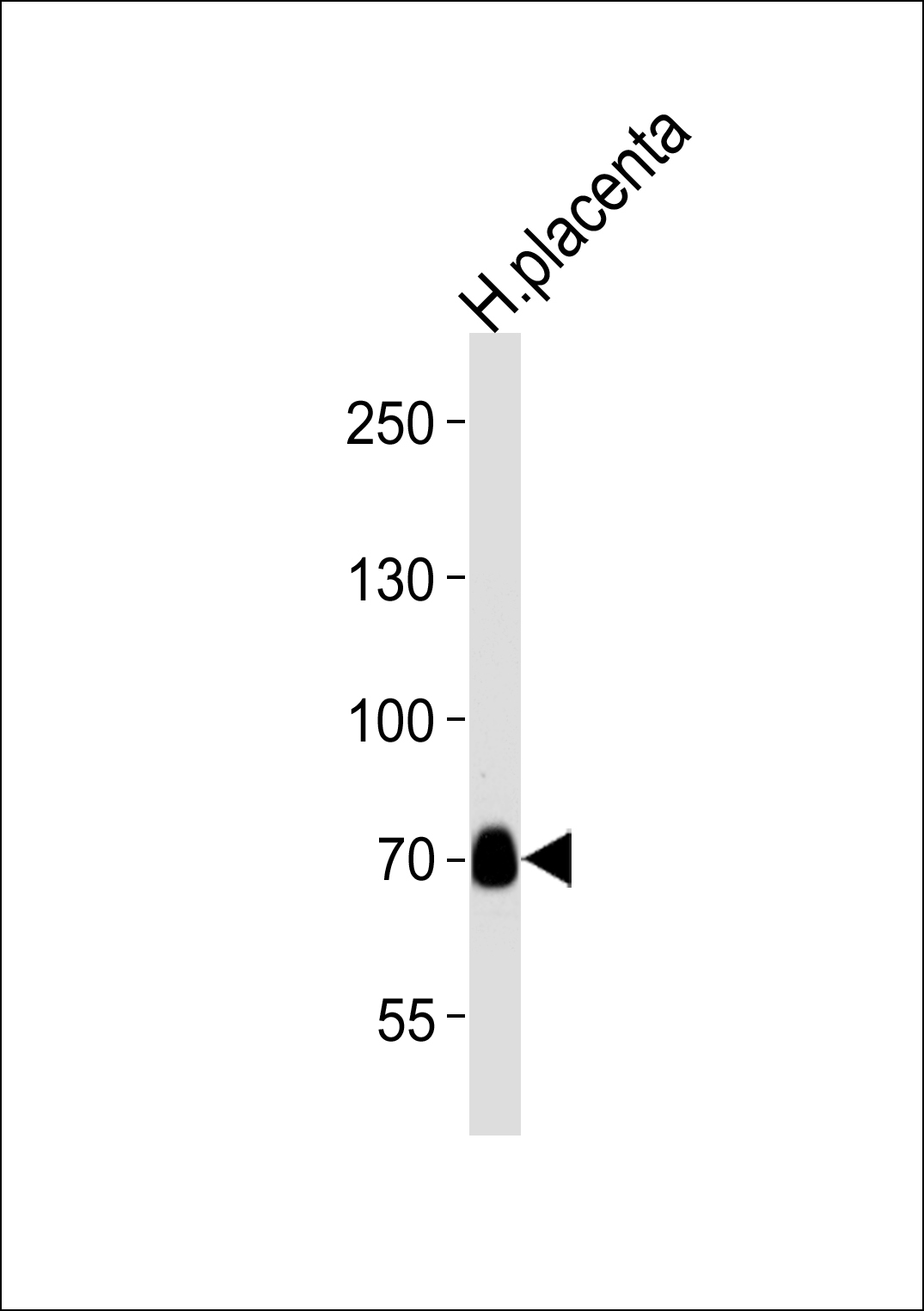 Western blot analysis of lysate from human placenta tissue lysate, using NEK11L Antibody (E495)(Cat. APR17558G). APR17558G was diluted at 1:1000 at each lane. A goat anti-rabbit IgG H&L(HRP) at 1:5000 dilution was used as the secondary antibody. Lysate at 35ug per lane. |