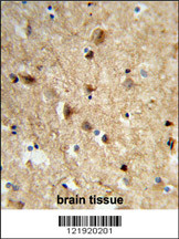 Formalin-fixed and paraffin-embedded human brain tissue reacted with NEURL Antibody (Center), which was peroxidase-conjugated to the secondary antibody, followed by DAB staining. This data demonstrates the use of this antibody for immunohistochemistry; clinical relevance has not been evaluated. |