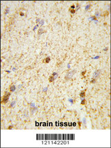 Formalin-fixed and paraffin-embedded human brain tissue reacted with QDPR Antibody (C-term), which was peroxidase-conjugated to the secondary antibody, followed by DAB staining. This data demonstrates the use of this antibody for immunohistochemistry; clinical relevance has not been evaluated. |