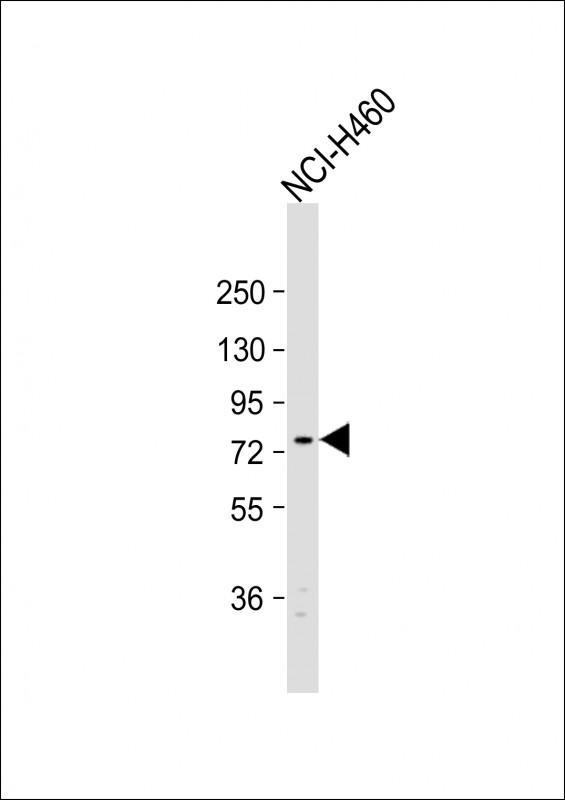 Anti-EXOC5 Antibody (C-term) at 1:1000 dilution + NCI-H460 whole cell lysate Lysates/proteins at 20 μg per lane. Secondary Goat Anti-Rabbit IgG, (H+L), Peroxidase conjugated at 1/10000 dilution. Predicted band size : 82 kDa Blocking/Dilution buffer: 5% NFDM/TBST.
