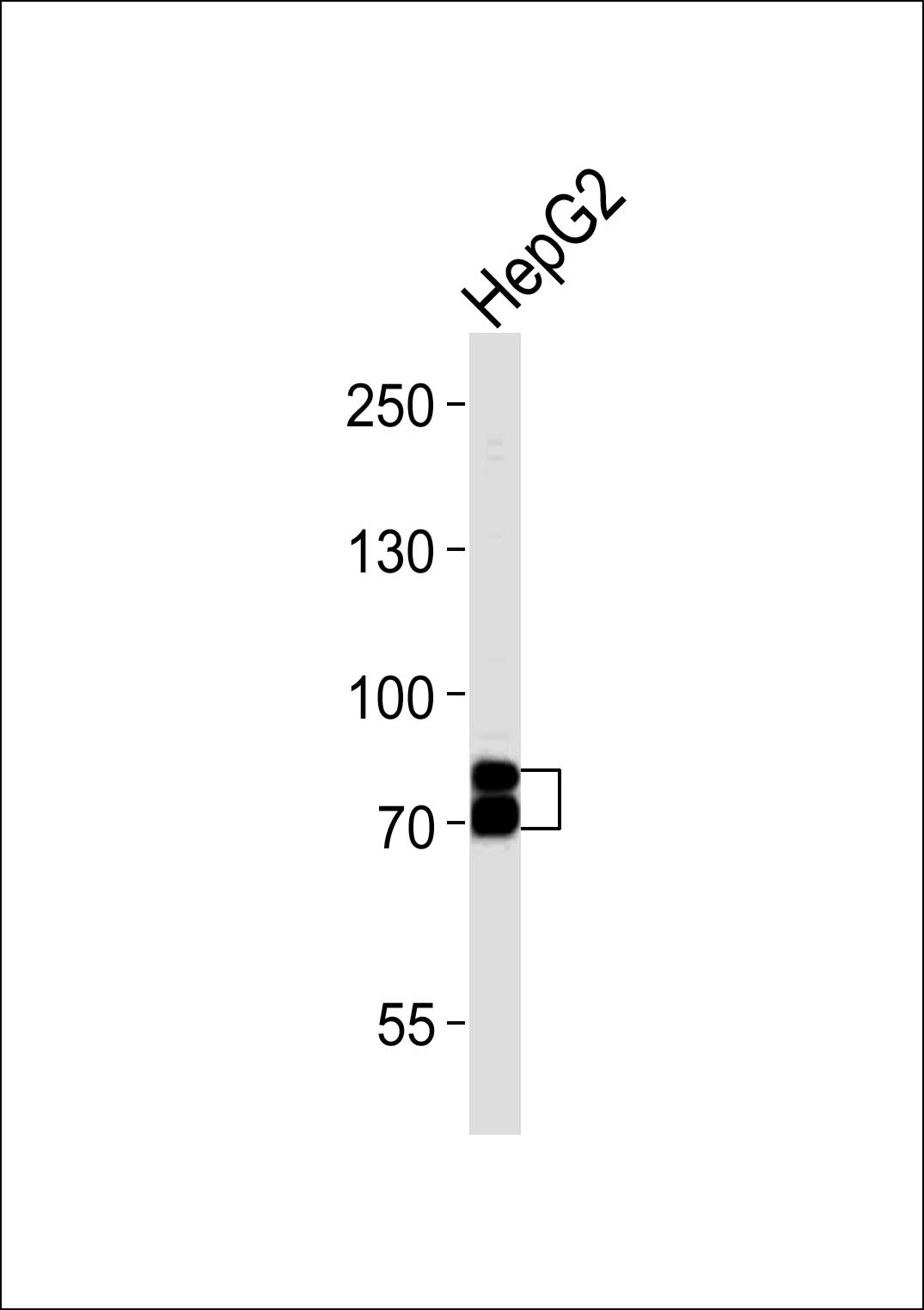Western blot analysis of lysate from HepG2 cell line, using SEMA4F Antibody (C-term)( APR13251G). APR13251G was diluted at 1:1000. A goat anti-rabbit IgG H&L(HRP) at 1:10000 dilution was used as the secondary antibody. Lysate at 20ug.