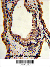 Formalin-fixed and paraffin-embedded human prostate carcinoma reacted with TPI1 Antibody (C-term), which was peroxidase-conjugated to the secondary antibody, followed by DAB staining. This data demonstrates the use of this antibody for immunohistochemistry; clinical relevance has not been evaluated.