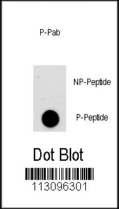 Dot blot analysis of anti-AKT1-pS473 Phospho-specific Pab (Cat.APR07020G) on nitrocellulose membrane. 50ng of Phospho-peptide or Non Phospho-peptide per dot were adsorbed. Antibody working concentrations are 0.5ug per ml.