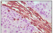 Figure 2: Immunohistochemical analysis of paraffin-embedded human lung carcinoma tissue, showing cytoplasmic localization using Vimentin mouse mAb with DAB staining.