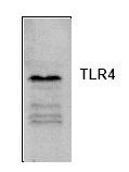 TLR4 (Toll-like receptor 4) is a mammalain homologue of the Drosophila toll protein. The human TLR4 is a type-1 transmembrane protein containing 799 amino acid residues. The extracellular domain has leucine-rich repeats and the intracellular domain is similar to that of IL-1 receptor. TLR4 is a receptor for lipopolysaccharide (LPS). In mice that are genetically tolerant to endotoxin, mutations have been identified in the intracellular domain of TLR4 that abolish LPS responsiveness. TLR4 uses a mechanism similar to that of the IL-1 receptor for signal transduction that leads to activation of NF-kB.