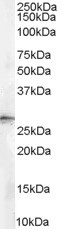 APR12060G (0.1 μg/ml) staining of human skin lysate (35 μg protein in RIPA buffer). Primary incubation was 1 hour. Detected by chemiluminescence.