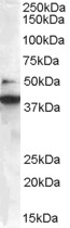 AMM04914G staining (0.3 μg/ml) of Jurkat lysate (RIPA buffer, 35 μg total protein per lane). Primary incubated for 1 hour. Detected by western blot using chemiluminescence. |