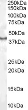 APR16249G (1 μg/ml) staining of Human Kidney lysate (35 μg protein in RIPA buffer). Primary incubation was 1 hour. Detected by chemiluminescence. |