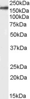 APR12120G (0.3 μg/ml) staining of Human Brain (Cerebellum) lysate (35 μg protein in RIPA buffer). Primary incubation was 1 hour. Detected by chemiluminescence. |