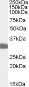AMM05045G (0.03 μg/ml) staining of Mouse Testis lysate (35 μg protein in RIPA buffer). Primary incubation was 1 hour. Detected by chemiluminescence.