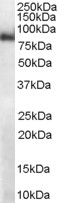 APR12150G (1 μg/ml) staining of mouse heart lysate (RIPA buffer, 35 μg total protein per lane). Primary incubated for 1 hour. Detected by western blot using chemiluminescence.
