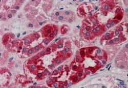 APR12150G (5 μg/ml) staining of paraffin embedded Human Kidney. Steamed antigen retrieval with citrate buffer pH 6, AP-staining. |