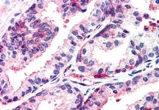APR12152G (2.5 μg/ml) staining of paraffin embedded Human Prostate. Steamed antigen retrieval with citrate buffer pH 6, AP-staining. |