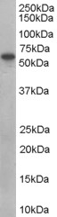 APR16396G (0.1 μg/ml) staining of human placenta lysate (35 μg protein in RIPA buffer). Primary incubation was 1 hour. Detected by chemiluminescence. |