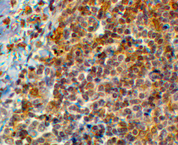B6552 (2 μg/ml) staining of paraffin embedded Human Tonsil. Steamed antigen retrieval with citrate buffer pH 6, HRP-staining. |