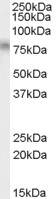 APR16410G (0.01 μg/ml) staining of Daudi cell lysate (35 μg protein in RIPA buffer). Primary incubation was 1 hour. Detected by chemiluminescence.