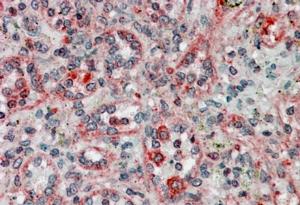 APR16417G (3.8 μg/ml) staining of paraffin embedded Human Spleen Steamed antigen retrieval with citrate buffer pH 6, AP-staining. |