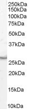 APR16429G (1 μg/ml) staining of Human Duodenum lysate (35 μg protein in RIPA buffer). Primary incubation was 1 hour. Detected by chemiluminescence. |