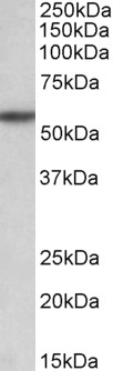 APR10419G (0.1 μg/ml) staining of Rat Liver lysate (35 μg protein in RIPA buffer). Primary incubation was 1 hour. Detected by chemiluminescence. |
