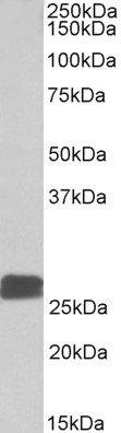 APR11807G (0.3 μg/ml) staining of Human Heart lysate (35 μg protein in RIPA buffer). Primary incubation was 1 hour. Detected by chemiluminescence. |