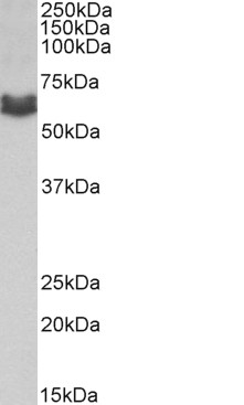 APR16203G (1 μg/ml) staining of MDA-MB-231 lysate (35 μg protein in RIPA buffer). Primary incubation was 1 hour. Detected by chemiluminescence. |