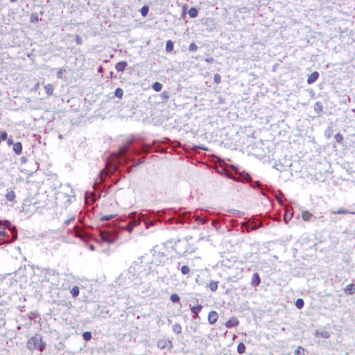 Anti-APLNR/ Apelin Receptor / APJ antibody IHC of human brain vessel. |