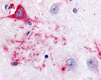 Anti-GPR39 antibody APR16563G IHC of human hippocampus, neurons of area ca1. |