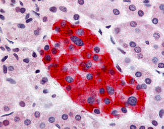 Anti-GPR55 antibody AMM05193G IHC of human pancreas, islet of Langerhans. |