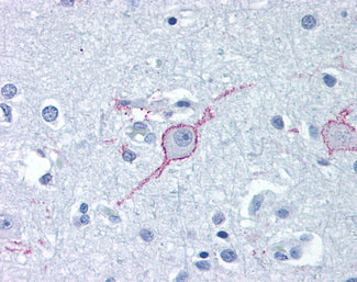 Anti-GALR3 antibody APR11994G IHC of human brain, cortex. |